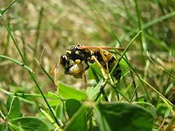 - ^ Arevalo, Elisabeth; Yong Zhu; James M Carpenter; Joan E Strassman (2004). "The phylogeny of the social wasp subfamily Polistinae: evidence from microsatellite flanking sequences, mitochondrial COI sequence, and morphological characters". BMC Evolutionary Biology. 4 (8): 8. doi:10.1186/1471-2148-4-8. PMC 385225. PMID 15070433.