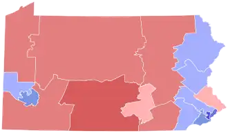 | 2011 | Tom Corbett (R) | Jim Cawley (R) | Linda L. Kelly (R)[n][w] | 112R, 91D | Pat Toomey (R) | 12R, 7D | |||||