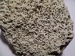 Some shell-[5] and rock-boring polydora worms leave a characteristic double hole in the rock and shells in which they burrow.