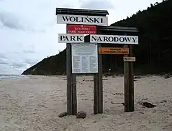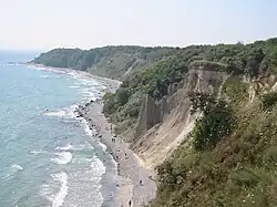 The Bay of Pomerania (Polish: Zatoka Pomorska [zaˈtɔ.ka pɔˈmɔr.ska]; German: Pommersche Bucht; Kashubian: Pòmòrskô Hôwinga) is a basin in the southwestern Baltic Sea, off the Pomeranian shores of Poland and Germany. It stretches between the northernmost tip of the island of Rügen called Gellort northwest of Cape Arkona in the west, and the village of Jarosławiec in the east. In the south, it is bounded by the islands of Usedom/Uznam and Wolin, which separate it from the Szczecin Lagoon which is flown through by the Oder River, and is connected to the bay by three straits, the Dziwna, Świna, and Peenestrom.