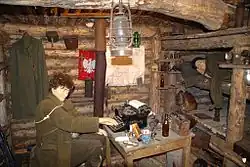 The organization declared itself subordinate to the Polish Government in Exile in London, and cooperated with the military structures of the Polish Underground State (Armia Krajowa, the "Home Army") but stressed its regional autonomy.[1][2] In 1943 internal ideological conflicts escalated during negotiations over the subordination of the organization to the main Polish anti-Nazi resistance movement, the Home Army.[1] Polish resistance structures in Pomerania had suffered more than their fair share of arrests, and Griffin leaders were wary of opening themselves up to a larger structure.[1] Furthermore, whereas the Home Army and the government in exile were run by a coalition of several parties, Griffin, while officially apolitical,[2] was mostly influenced by the National Democrats.[1] A portion of the Griffin split to join the Miecz i Plug (Sword and Plow) nationalist movement.[1] However, Miecz i Plug had been infiltrated by the Gestapo or, according to other sources, by NKVD agents who first framed existing leaders for collaboration and then proceeded to establish real contacts with the Gestapo. [4][5] Either way, as a result, many of the conspirators of the Griffin were compromised, arrested by the Nazis, and sent to Nazi concentration camps.[1]