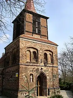 The first traces of human activity in the area of today's Pomorzany date from the late Neolithic period. The stabilisation of the settlement in this area occurred in the 8th century. The oldest record of Pomorzany, then a small farming community, dates to documents issued by Duke Barnim I on 8 May 1253, where it was recorded under the name Pomerenstorp. In the following centuries, the spelling evolved to Pommerensdorf.[2] In the 14th century, the Pommerensdorf Church was built in the village, with the Gothic style, situated on a slope paved with field stones and surrounded by a defensive wall. Originally, it belonged to the Catholic denomination, and following the reformation, it became Lutheran. The building was destroyed by the Swedish army during the siege in the Scanian War, and was rebuilt afterwards. Later, it was rebuilt once more, eventually losing its Gothic appearance. The church was destroyed again during the Second World War. It was rebuilt in 1973, being reopened as the St. Maximilian Maria Kolbe Church, belonging again to the Catholic denomination. Next to it was also placed a small cemetery yard, which was eventually cleared out in 1978. The church is located at the current 67 and 69 Włościańska Street.[2][3]