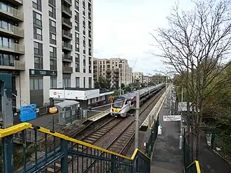 The lines through Ponders End were electrified on 5 May 1969.[4] Prior to the completion of electrification in 1969, passenger services between Cheshunt and London Liverpool Street through Ponders End station were normally operated by Class 125 diesel multiple units (which had been purpose-built for the line in 1958).