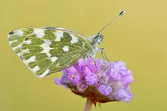 The adults fly from March to October[1][2] with two to four generations depending on the latitude. The eggs are laid singly and have an incubation period of seven days. The caterpillars are present from May. They are greyish-greenish, with black dots and broad yellow stripes, quite similar to the larva of the cabbage butterfly (Pieris brassicae). The larvae feed on Resedaceae species. Pontia edusa hibernates in the chrysalis stage.