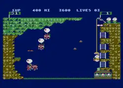 Datasoft released Pooyan programmed by Scott Spanburg for the Atari 8-bit computers,[1] Commodore 64 and Dragon 32/64[2] in 1983. It was also ported to the Atari 2600, TRS-80 Color Computer,[3] Sord M5, MSX, Apple II, TRS-80, Tomy Tutor, PV-1000, and Famicom. The arcade version of the game was released as part of the Arcade Archives series in 2019.[4]