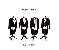 "Pop-musiikkia" (in English "Pop Music") is a single released in November 1997 by Finnish artists Neljä baritonia ("Four baritones"), a band consisting of Ismo Alanko, Kalle Ahola (of Don Huonot), Ilkka Alanko (of Neljä Ruusua) and A. W. Yrjänä (of CMX).[1] It is the only song the band recorded, and has been certified double platinum in Finland – currently the song ranks 61st on the list of the best-selling singles of all time in the country, with sales of over 17,000 copies.[2] The song's music video was directed by Tommi Pietiläinen.