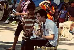 In 2008, Concepcion began advocating the rights and welfare of every Filipino child as World Vision's Ambassador for Children.[106][107] He visited poor municipalities and provinces in the Philippines to encourage everyone to share their blessings, so poor Filipino families could experience the joy of Christmas through World Vision's Noche Buena Gift.[107] In early 2009, he visited Palawan, particularly far-flung areas to see the lives of Filipino children.[108] Concepcion was appointed as Youth Ambassador for Education and the Arts in the 3rd District of Manila wherein he launched his PaperClay Art Competition at the Manila Ocean Park with the theme, Ako Para sa Kalikasan.[105] He believes that PaperClay art is a great tool for exercising the creativity of students.[105] In May 2009, Concepcion held another major concert entitled, I'll Find Your Heart: Part 2.[109] This concert helped raise funds for Aim Christian Learning Center.[109] When the Philippines was hit by Typhoon Ondoy, Concepcion along with other celebrities helped distribute relief goods to the isolated families in evacuation centers in Metro Manila. In Marikina, which was the mostly affected by the typhoon, Concepcion gathered all the children to encourage positivity.[110]