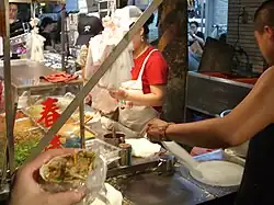 Popiah (Pe̍h-ōe-jī: po̍h-piáⁿ, Teochew Peng'im: boh⁸ bian²) is a Fujianese/Teochew-style fresh spring roll filled with an assortment of fresh, dried, and cooked ingredients, eaten during the Qingming Festival and other celebratory occasions. The dish is made by the people and diaspora of Fujian province of China (in Quanzhou, Xiamen, and Zhangzhou), neighbouring Chaoshan district, and by the Teochew and Hoklo diaspora in various regions throughout Southeast Asia and in Taiwan (due to the majority of Taiwanese being Hoklo), The origin of popiah dates back to the 17th century.[1][2]