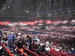 Birmingham in the late 1960s and early 1970s was the birthplace of heavy metal music,[82][83][84] whose international success as a musical genre over subsequent decades has been rivalled only by hip-hop in the size of its global following,[85][86] and which bears many hallmarks of its Birmingham origins.[87] The city's location in the centre of England meant that its music scene was influenced both by the London-based British blues Revival and by the melodic pop songwriting of Liverpool, allowing it to apply Liverpool's harmonically inventive approach to London's high-volume guitar-dominated style, in the process moving beyond the conventions of both.[88] Birmingham's local jazz tradition was to influence heavy metal's characteristic use of modal composition,[89] and the dark sense of irony characteristic of the city's culture was to influence the genre's typical b-movie horror film lyrical style and its defiantly outsider stance.[90] The industrial basis of Birmingham society in the 1960s and 1970s was also significant: early heavy metal artists described the mechanical monotony of industrial life, the bleakness of the post-war urban environment and the pulsating sound of factory machinery as influences on the sound they developed,[91] and Black Sabbath's use of loosely stringed down-tuned guitars and power chords partly resulted from lead guitarist Tony Iommi's loss of the ends of two fingers on his right hand in an industrial accident with a sheet metal cutting machine.[92] The style of music also had precedents among earlier local bands: aggressive performing styles had been a characteristic of the wild and destructive stage shows of The Move,[93] and Chicken Shack's pioneering use of high volume Marshall Stacks had pushed the boundaries of loud and aggressive blues to new extremes.[94]