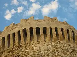The acropolis of the city extended over two hills at the top of the promontory: Poggio del Castillo, the site of the castle and modern structures, and Poggio del Telegrafo, also called, confusingly, Poggio del Molino, not the only hill of that name in the area. Remains of a Roman villa, Villa le Logge, share Telegrafo with an excavation last conducted in the seasons of 2003–2005, which uncovered among other things postholes from a village of huts of the same date as the Villanovan cemeteries, about 900 BC.[11]