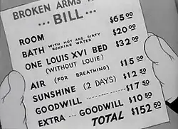 The cartoon centers around Porky Pig and Daffy Duck's attempts to escape the Broken Arms Hotel manager without paying their bill (on which they are charged for every luxury, including breathing air, sunshine, and goodwill); they are trying to evade payment because Daffy lost all their money playing craps.