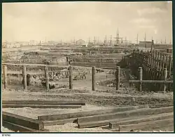 By the mid-1840s, with increasing trade, the wharves proved insufficient and some more private wharves were constructed.[31] During the late 1850s the state of the dry and dusty plain, between Adelaide and Port Adelaide, led to the pejorative terms "Dustholia" and "Mudholia" in summer and winter.[35]