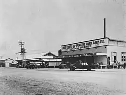 In November 1903, a public meeting was held at the Gladstone Town Hall to gauge local interest in forming a co-operative dairy company and erecting a dairy factory at Gladstone. Supported by graziers and selectors alike, a provisional committee was elected, representing Mount Larcombe, Calliope, Clyde Creek, Boyne River, Gladstone, Bororen, and Miriam Vale. The committee canvassed the district for support, soliciting shares and guarantees of milk supplies. As a result, the Port Curtis Co-operative Dairy Company Ltd was registered in Brisbane in September 1904 as a joint stock company, with the registered office situated in Gladstone. The company's objective was to erect a factory at Gladstone for the manufacture and storage of butter and other dairy products. During 1904 articles of association were drawn up, and a founding committee comprising prominent local graziers and businessmen was elected. A site for the dairy factory was selected adjacent to the railway line, a couple of blocks southeast of the main Gladstone railway station, and the scheme was approved by the Meat and Dairy Board. Tenders for the construction of a dairy factory (a timber structure) at Gladstone were called in June 1905 by Bundaberg architect Frederic Herbert Faircloth, with the contract let in August to J Connors. A dispute between the contractor and the dairy company delayed completion for several months, but finally the factory commenced butter production in April 1906. In 1914, Queensland Railways constructed a dead end siding for the PCD, which was extended in 1,923 by 70 feet (586 by 21 m).[1]