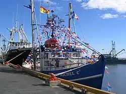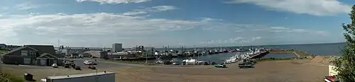 The port is rarely used for commerce; a boat docked there in 2006 to load tanks.[16] The various boats in the port are used for coastal, semi-offshore, and offshore fishing.[16] Many boats in the region are notable for not being equipped with lifeboats but with survival capsules, manufactured by the company Ovatek in Bas-Caraquet. Several seiners are stationed at the port, including the Ocean Leader and the Apollo III, two of the three largest in the peninsula. Their recent sale to foreign interests could result in the loss of about 200 jobs.[20] The fishing fleet comprises about 75 boats,[18] but up to 150 boats have been seen on festival days. Most of the different vessels measure less than 14 meters long, but some are much larger.[21][22]
