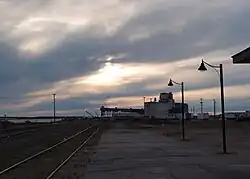 The port was built by the Government of Canada and remained under federal government ownership until its sale in 1997 to the American company OmniTRAX for $10.[6] In December 2015, OmniTRAX announced it was negotiating a sale of the port, and the associated Hudson Bay Railway, to a group of First Nations based in northern Manitoba.[7][8] With no sale finalized by July 2016, OmniTRAX shut down the port and major railroad freight operations along the HBR in August 2016.[8][9] The railway continued to carry cargo to supply the town of Churchill itself until the line was damaged by flooding on May 23, 2017. The Port and the Hudson Bay Railway were sold to Arctic Gateway Group — a consortium of First Nations, local governments, and corporate investors — in 2018.[10] On July 9, 2019, ships on missions to resupply arctic communities began stopping at the port for additional cargo,[11] and the port began shipping grain again on September 7, 2019.[12] The port and railway came under complete community and Indigenous ownership in 2021, after AGT Food and Ingredients and Fairfax Financial transferred their shares in Arctic Gateway to OneNorth – a consortium of community and Indigenous partners which owned the other fifty-percent of Arctic Gateway's shares.[13]