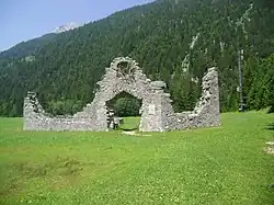 In the Middle Ages the Scharnitz Pass belonged to the County of Werdenfels, the border between the County of Tyrol then being located at Schlossberg Castle north of Seefeld.[1] The long-term aim of Tyrol was to push the state border north to the strategically important Scharnitz Pass. The Tyrolese achieved a partial success when, on 20 October 1500, Emperor Maximilian I and Prince-Bishop Philip of Freising ratified a treaty agreed the year before that moved the border of Tyrol to within a kilometre south of Scharnitz.[2]
