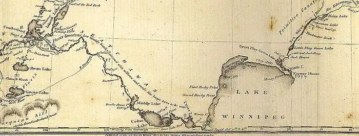 | 12 June | They left Norway House crossed Lake Winnipeg and entered the Saskatchewan River system at Grand Rapids |