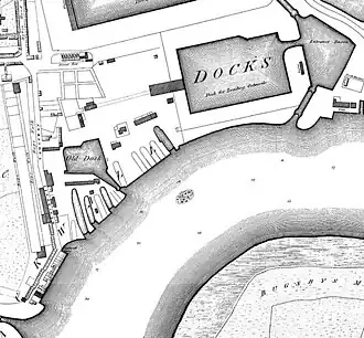 The entrance to the West India Docks, just to the south-west of the rock, was substantially obstructed by the reef upon the docks' opening in 1802. In 1803, Robert Edington surveyed the rock estimated its dimensions as 600 by 150 feet (183 m × 46 m). An 1846 report by the Tidal Harbours Commission described it as an outcrop of plum-pudding stone.