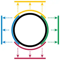 | The four charts each map part of the circle to an open interval, and together cover the whole circle. Image credit: User:KSmrq |