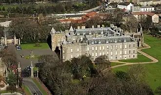 The earliest part of the castle was a modest hall house, on a site overlooking the Dour Burn. Over the next 400 years, the castle was successively expanded according to contemporary architectural ideas. The hall house became a tower house in the 15th century, and was extended twice in the 16th century. The final addition was made around 1635, with refined Renaissance details, and the whole was complemented by a walled garden to the east and terraced gardens to the south. The terraces, dating from the mid-16th century, form one of the oldest gardens in Scotland, and offer extensive views across the Firth of Forth to Edinburgh.