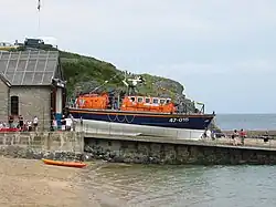 The Tyne-class lifeboat Hetty Rampton (ON 1120), in service since 27 April 1987, was replaced in 2012 by a new Tamar-class lifeboat, John D Spicer (ON 1304). Funded by a bequest within the will and by agreement with the executors of the estate of John Dominic Spicer of Oxfordshire, who died in October 2010, the new boat was temporarily kept on a mooring while work to build a new boathouse was undertaken.[5][6]