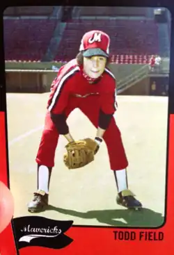 Bing Russell's son, actor Kurt Russell, played for the club for a month in its inaugural season in 1973.[11][12] The first-year Mavericks' Hollywood connection was not limited to the Russells; manager Hank Robinson (1923–2012) was a character actor,[13][14] and players Robbie Robinson, Jason Tatar, and Ken Medlock all had long careers as actors. Perhaps the team's most successful Hollywood story is that of Maverick batboy Todd Field, who went on to have a long career as an actor before becoming a six-time Academy Award-nominated writer and director.[15][16]