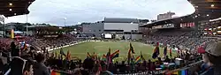 The large crowds attended despite Timbers front office expectations of 7,000 fans per match and little promotion before the team's launch.[104] The front office initially expected to play regular-season matches at Merlo Field of the University of Portland, which had a capacity of less than 5,000, but the Thorns sold more than that number in season tickets before the league's launch and expected to reach 10,000 season tickets sold by 2014. A majority of those season ticket holders did not have season tickets to the sibling Timbers club.[105] The immediate and sustained strength of support prompted other women's clubs to try to replicate the Thorns' success,[106][104] including formal studies of the role of organized support in women's soccer that focused on the Riveters.[107][108][109]