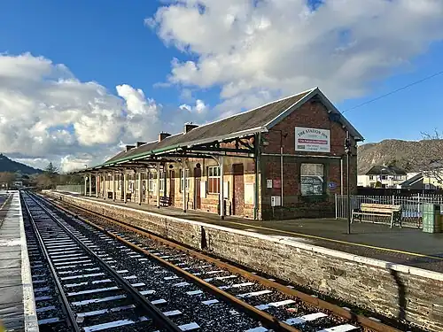 Porthmadog railway station serves the town of Porthmadog on the Llŷn Peninsula in Gwynedd, Wales. The station is on the Cambrian Coast Railway with passenger services to Pwllheli, Harlech, Barmouth, Machynlleth, Shrewsbury and Birmingham.