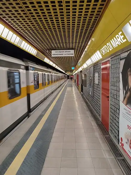Porto di Mare (literally Sea Port) is a station on Line 3 of the Milan Metro in Milan, Italy. The station was opened on 12 May 1991 as part of the extension of the line from Porta Romana to San Donato.[2] It takes the name from a never-realized project of a fluvial port to reach the Po River and consequentially the Adriatic Sea.
