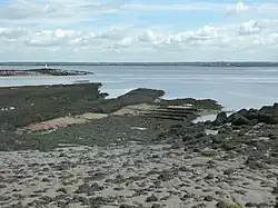 The Severn is noted for its extreme tidal range. This means that there are few safe crossing points for a ferry, the New Passage Ferry being the deeper channel downstream of the Dun Sand and upstream of the English Stones.[1] This passes between New Passage Pier in Gloucestershire and Black Rock in Monmouthshire, approximately the line of the Second Severn Crossing. The other crossing in the area is upstream at the Old Passage Ferry, from Aust to Beachley, approximately the line of the earlier Severn Bridge. This crossing goes from England to England, as it is still slightly upstream of the confluence with the Wye below Chepstow,[i] and so a crossing to here would still require traffic to cross the Wye on its way to Cardiff.