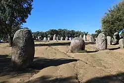 The region has been inhabited by humans since circa 400,000 years ago, when Homo heidelbergensis entered the area. The oldest human fossil found in Portugal is the 400,000-year-old Aroeira 3 H. Heidelbergensis skull discovered in the Cave of Aroeira in 2014.[34] Later Neanderthals roamed the northern Iberian peninsula and a tooth has been found at Nova da Columbeira cave in Estremadura.[35] Homo sapiens sapiens arrived in Portugal around 35,000 years ago and spread rapidly.[36] Pre-Celtic tribes inhabited Portugal. The Cynetes developed a written language, leaving stelae, which are mainly found in the south.