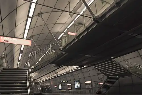 Portugalete station follows the typical cavern-shaped layout of most underground Metro Bilbao stations designed by Norman Foster, with the main hall located directly above the rail tracks.