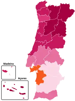 | Coimbra | 147,906 | 71.93% | 19,801 | 9.63% | 29,038 | 14.12% | 8,887 | 4.32% | 67.51% | |