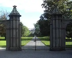 The castle was abandoned as a home following a fire in 1826. The Office of Public Works has re-built the huge chimney stacks. The estate grounds contain walled gardens, gate lodges, gateposts and a yard.[3][4][5][6][7][8][9]