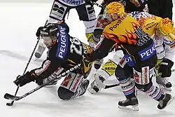 The PostFinance Top Scorer is awarded annually to the Swiss National League (NL) and Swiss League (SL) player who leads the league in points at the end of the regular season. The reigning Top Scorer from each team wears a yellow flame-emblazoned shirt and helmet in all playoff games. Once the qualifiers have taken place, the player with the most points in the league is then crowned the PostFinance Top Scorer of the NL or SL.