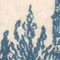 On genuine stamps, the tree tops fade into the sky. On forged stamps, the trees have a bold outline with solid leaves.[1]