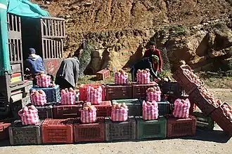 Potatoes have been grown in Algeria (then a French colony) since at least the late 19th century, when problems with the crop being affected by the potato tuber moth, Phthorimaea operculella, were reported.[1] Potatoes had become a major crop by 1951 and they were exported to France. In July 1951 growers in Algeria blamed high taxes and railway freight charges for making the crop uneconomic to grow and held a three-day stoppage to attempt to pressure the French government into taking action. Exports elsewhere, such as to the United Kingdom, were hampered by a lack of harbour facilities.[2] By the 1970s, following Algerian independence, potatoes were grown on large scale on government farms in the Mascara Province. In the 1990s the government farms were broken up among private companies and individuals, resulting in an expansion in production.[3]: 17