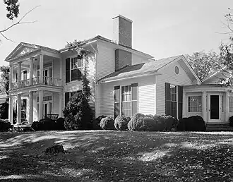Poteat House, also known as Forest Home, is a historic plantation house located near Yanceyville, Caswell County, North Carolina. It was built in 1855–1856, and consists of a two-story main block, three bays wide, with flanking one-story wings in the Greek Revival style. It has a center hall plan and was restored in 1928–1929 by Helen Poteat and her husband, author and playwright Laurence Stallings. It features a reconstructed double pedimented portico supported by four plain Roman Doric order columns. Also on the property is a contributing small cabin used by enslaved people.[2] The house was the birthplace of painter Ida Isabella Poteat.[3]