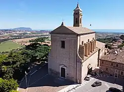 The former complex of Saint Augustine borders via Silvio Pellico and covers a remarkable portion of the old town. The first document, that certifies the presence of the Augustinians in Potenza Picena, dates back to 1250, when the church was entitled to Mary Magdalene. The interior of the church houses an altarpiece depicting “La Maddalena ai piedi della croce” (Magdalene at the foot of the cross) by Pietro Tedeschi, an ancient pipe chamber organ built in 1776 by master Giovanni Fedeli from Camerino and the precious panel painted by Bernardino di Mariotto in 1506 depicting “La Madonna con il Bambino tra i SS. Francesco, Antonio e Giovannino tra gli angeli musicanti” (The Madonna and Child among Saints Francis, Antonio and Infant John the Baptist among the Musician Angels). [4] Today the church is deconsecrated and has become an auditorium, a cultural centre entitled to Ferdinando Scarfiotti, a production designer, Oscar winner in 1988 for “The Last Emperor” by Bertolucci.