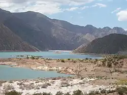 View of Potrerillos Reservoir with the dam in the distance | |