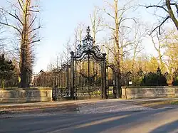Apart from the Kaiserbahnhof, Park Sanssouci station has a second, minor building named Bürgerbahnhof used as a passenger reception hall. This wooden structure is a rare representative of station architecture from the 1860s. In front of it there is an entrance gate to the park named Posttor.