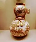 Persian, Turkish, European, and Japanese Pottery were displayed in the museum to expose the visitors to global developments and craftsmanship. Exhibits include a large Satsuma vase created by the Kinkosan family of Kyoto in Japan, belonging to the Meiji period. It has elaborate patterns gilded and enamelled in gold and vivid colours that depict samurais and geishas and scenes of their lives. Doulton and Milton potteries, Queen's Ware, signature pieces of the Lambeth School of Art showcase English ceramics of the time. Ipsen Pottery by the Danish potter is represented by a pair of Amphora vases with classical Greco-Roman motifs.[13]