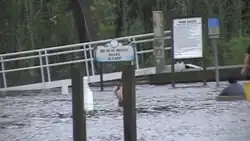 ![]() The flooded boat ramp of Pottsburg Creek during Tropical Storm Fay. | |