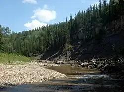 | Pouce Coupe River canyon after the confluence with Saskatoon Creek | |
