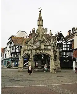 The Poultry Cross is the only one remaining of four market crosses that once stood in Salisbury. The others were the Cheese Cross in the present Cheesemarket area, Barnard's Cross (livestock) at the junction of Barnard Street and Culver Street and another which designated a market for wool and yarn at the east end of the present Market Place, near the War Memorial.[1]