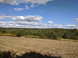 The Povcha Upland is situated in western Ukraine, between the valleys of the Styr and the Ikva, surrounding and taking its name from the village of Povcha (Ukrainian: Повча; former Polish name: Pełcza), about 105 km from the Polish-Ukrainian border. Its highest peak is at 361 m a.s.l.[2] (358 m according to other sources)[3] compared to the mean maximum altitude of the surrounding plain being about 270–280 m; this is the highest point of the Volhynian Upland.[2]