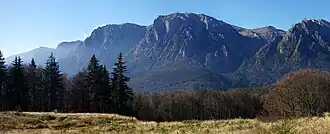 The relief is split in approximately equal parts between the mountains, the hills and the plain. In the North side there are mountains from the southern end of the Eastern Carpathians - the Curvature Carpathians group; and the Bucegi Mountains the Eastern end of the Southern Carpathians group. The two groups are separated by the Prahova River Valley.