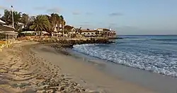 Praia de Santa Maria is a beach on the south coast of the island of Sal, Cape Verde. It stretches from the city center of Santa Maria in the east to the Ponta do Sinó (the island's southernmost point) in the southwest. It is about 2 km long. Along with Praia da Ponta Preta, it is the most popular beach on the city and island.