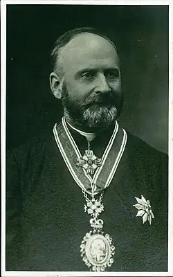 Matulaitis-Matulevičius joined him as a professor at the academy in 1907. They often discussed reviving the Congregation of Marian Fathers of the Immaculate Conception which at the time had only one elderly member, but it had to be done in secret due to various Russification policies.[4] On 29 August 1909, in a private chapel of auxiliary bishop Kazimierz Ruszkiewicz at the clergy house of the Holy Cross Church in Warsaw, Matulaitis-Matulevičius became a member of the Marian Fathers and Būčys began his novitiate.[4] In 1910, he refused an offer to become suffragan bishop of Samogitia.[11]