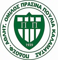 Prassina Poulia Football Athletic Club (Greek: Ποδοσφαιρικός Αθλητικός Όμιλος "Πράσινα Πουλιά") is one of the oldest football clubs in Kalamata, Greece, being founded in 1938.[1] Its colors are green and white and its name literally means "green birds".